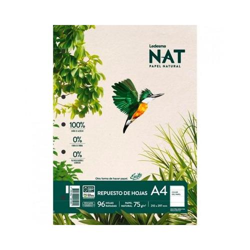 Repuesto Nat A4 x 96 hjs rayadas con margen reforzado